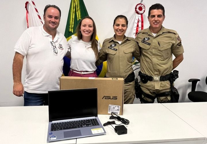 Vereadora Damires Rinarlly entrega notebook para Patrulha de Prevenção à Violência Doméstica em Conselheiro Lafaiete